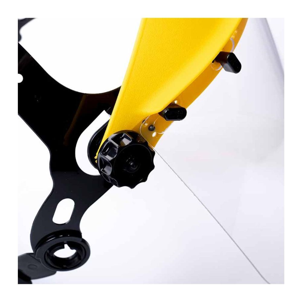 La ergonomía marca la diferencia: ajuste por rosca en la zona dorsal, frontal regulable en altura y banda de sudoración para mantener la comodidad y la estabilidad en turnos prolongados. Un diseño robusto con excelente relación calidad-precio, ideal para estandarizar la protección facial en equipos completos.